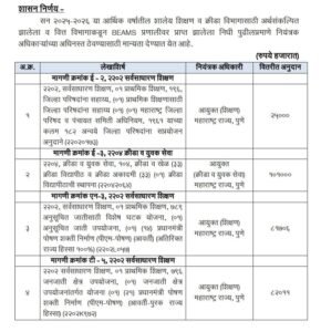 यानुसार सन 2025-26 या आर्थिक वर्षातील शालेय शिक्षण व क्रिडा विभाग करीता अर्थसंकल्पित झालेला व वित्त विभाग मार्फत बिम्स प्रणालीवर प्राप्त झालेला निधी पुढीलप्रमाणे वितरीत करण्यास मान्यता देण्यात आलेली आहे .