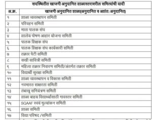सद्यस्थितीमध्ये खाजगी अनुदानित शाळास्तरावरील समित्यांच्या याद्या :
