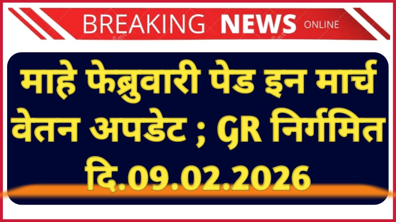 माहे फेब्रुवारी पेड इन मार्च वेतन अपडेट ; GR निर्गमित दि.09.02.2026