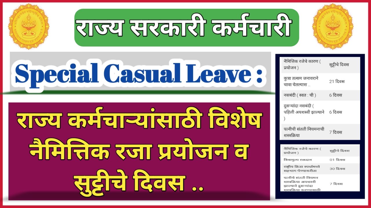 Special Casual Leave : राज्य कर्मचाऱ्यांसाठी विशेष नैमित्तिक रजा प्रयोजन व सुट्टीचे दिवस !