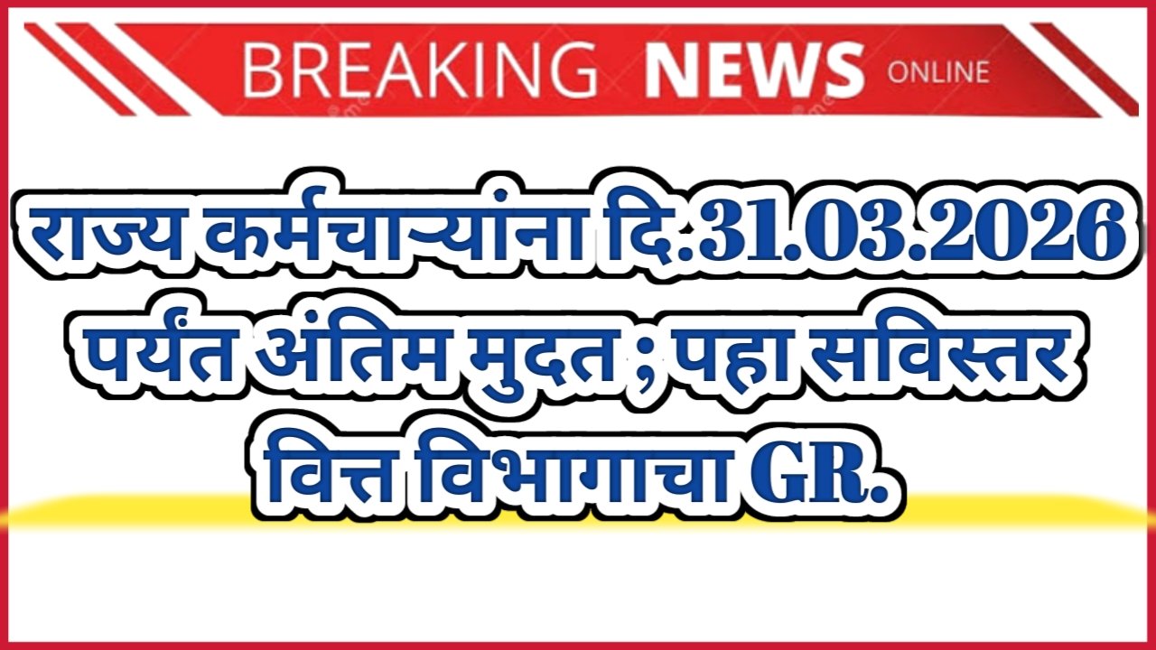 राज्य कर्मचाऱ्यांना दि.31.03.2026 पर्यंत अंतिम मुदत ; पहा सविस्तर वित्त विभागाचा GR.