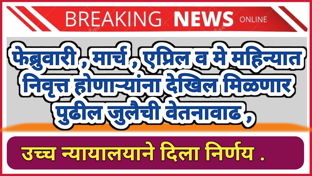 फेब्रुवारी , मार्च , एप्रिल व मे महिन्यात निवृत्त होणाऱ्यांना देखिल मिळणार पुढील जुलैची वेतनावाढ , उच्च न्यायालयाने दिला निर्णय .