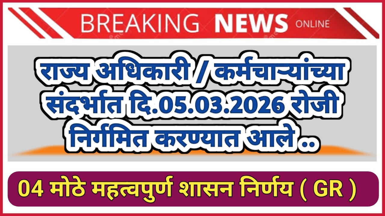 राज्य अधिकारी / कर्मचाऱ्यांच्या संदर्भात दि.05.03.2026 रोजी निर्गमित करण्यात आले 04 मोठे महत्वपुर्ण शासन निर्णय (GR)