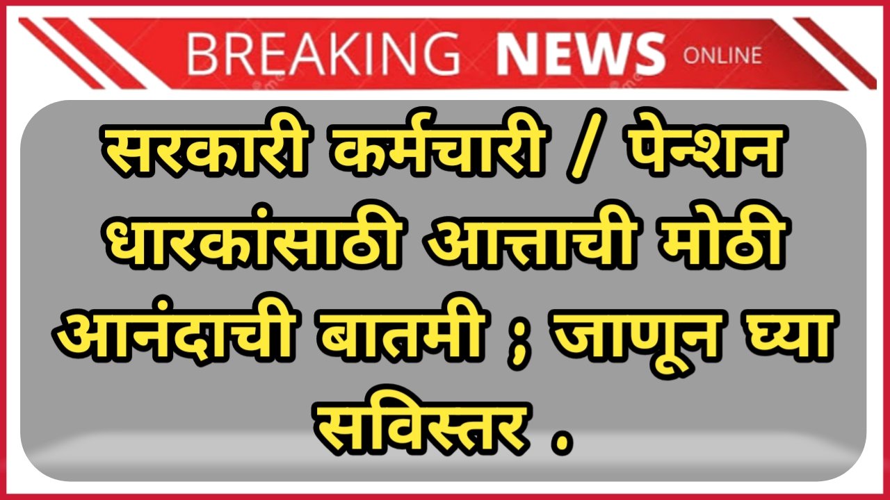सरकारी कर्मचारी / पेन्शन धारकांसाठी आत्ताची मोठी आनंदाची बातमी ; जाणून घ्या सविस्तर .