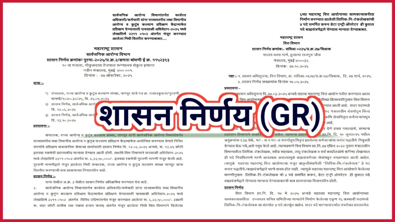 राज्य कर्मचाऱ्यांच्या बाबत दि.27.10.2025 रोजी 02 महत्वपुर्ण शासन निर्णय (GR) निर्गमित !